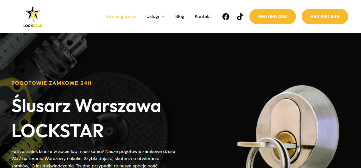 LOCKSTAR Pogotowie Zamkowe to zaufany partner w nagłych sytuacjach związanych z zamkami na terenie Warszawy i okolic. Działając 24/7, oferujemy szeroki zakres usług ślusarskich, takich jak awaryjne otwieranie samochodów, mieszkań i sejfów, a także wymianę i naprawę zamków. Dzięki 10-letniemu doświadczeniu radzimy sobie z najtrudniejszymi przypadkami, zapewniając szybkie i skuteczne rozwiązania. Nasze mobilne usługi z dojazdem do klienta gwarantują wygodę i profesjonalizm. LOCKSTAR to synonim bezpieczeństwa i niezawodności, doceniany przez wielu zadowolonych klientów.